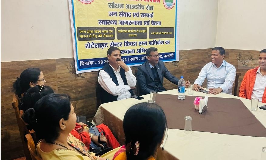 ऋषिकेश : अखिल भारतीय आयुर्विज्ञान संस्थान, एम्स ऋषिकेश के सेटेलाइट सेंटर, किच्छा के तत्वावधान में कुमाऊं मंडल के अंतर्गत हल्द्वानी में जन संवाद एवं सम्पर्क, स्वास्थ्य जागरूकता एवं चेतना कार्यक्रम आयोजित किया गया। जिसमें संस्थान के आउटरीच सेल द्वारा एम्स की ओर से संचालित होने वाले तमाम स्वास्थ्य एवं जनजागरुकता अभियानों से आमजन को रूबरू कराया गया और उनसे इस तरह के जनस्वास्वास्थ्य से जुड़े कार्यक्रमों में अधिकाधिक जनसहभागिता सुनिश्चित करने का आह्वान किया गया, जिससे संस्थान की इस पहल से स्वस्थ समाज की परिकल्पना को साकार किया जा सके।