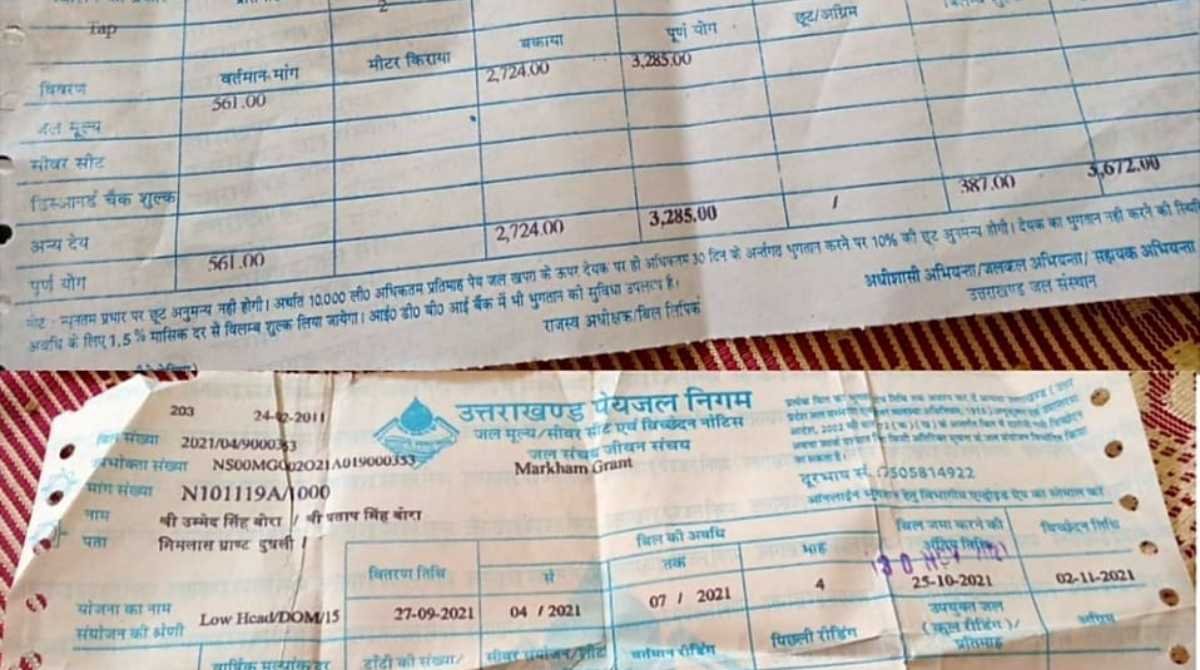 कई दूसरे भी कार्य किए गए। जिसके बाद अप्रैल 2021 में जल संस्थान द्वारा इन गांवों की पूरी पेयजल योजना पेयजल निगम को ट्रांसर्फर कर दी थी। और उसके बाद से पेयजल निगम ही इन गांवों के उपभोक्ताओं से पेयजल बिल वसूल कर रहा था। लेकिन इस फरवरी माह में उपभोक्ताओं को अब फिर से जल संस्थान द्वारा मार्च तक के पेयजल बिल भेज दिए गए हैं। जिससे उपभोक्ताओं के सामने असमंजल की स्थिति पैदा हो गई है कि वो पेयजल बिल किस विभाग में जमा करें। यही नहीं उपभोक्तओं का कहना है कि उनके बिल भी हजारों में जल संस्थान द्वारा भेजे गए हैं।