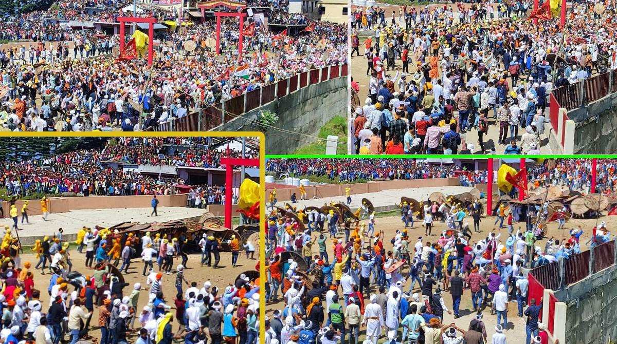 Bagwal Mela: चम्पावत जनपद के देवीधुरा में लगने वाले मां बाराही धाम के बग्वाल मेले की धूम उत्तराखंड में है। शुक्रवार को मेले में जहां सीएम धामी ने शिरकत की। वहीं हजारों दर्शकों के सामने बग्वाल युद्ध हुआ। बाराही धाम देवीधुरा (Barahi dham Devidhura) में खोलीखाड़ दुर्बाचौड़ मैदान बग्वाल युद्ध (Bagwal war) खेला गया है। जिसमें रणबांकुरों ने एक दूसरे पर फल, फूल और पत्थरों से हमला किया। इसमें कई लोगों के घायल होने की सूचना है।