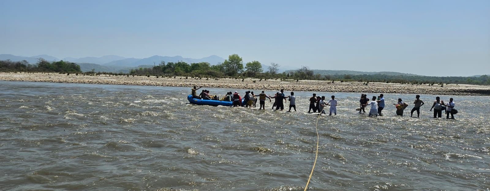 ​गंगा की ‘नील धारा’ का बहाव बहुत तेज था, जिससे नाव ले जाना जोखिम भरा था। जवानों ने पेशेवर सूझबूझ दिखाते हुए राफ्टिंग बोट और मजबूत रस्सियों का इस्तेमाल किया।