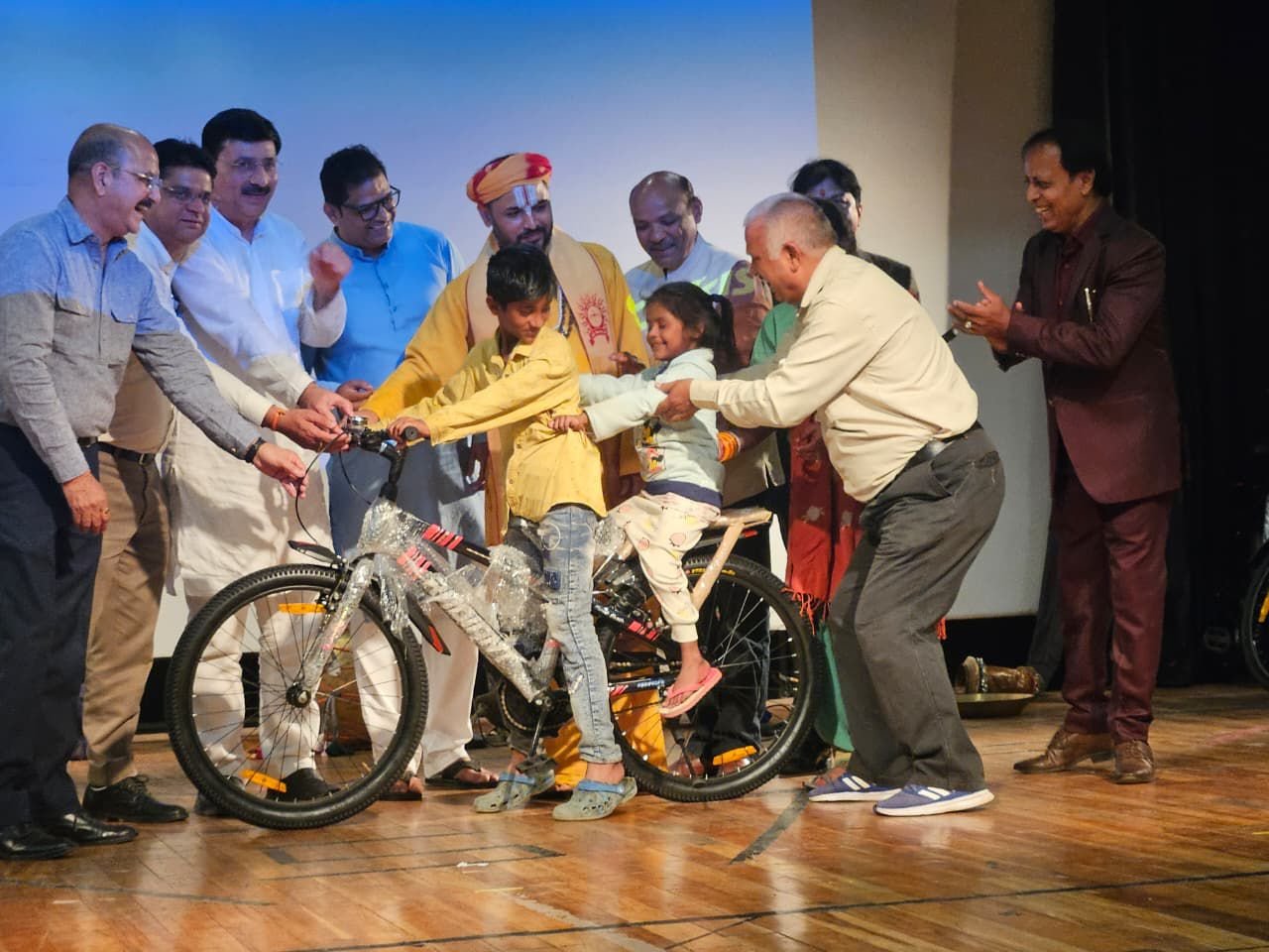 पत्रकारों के बच्चों को साइकिलें उपहार